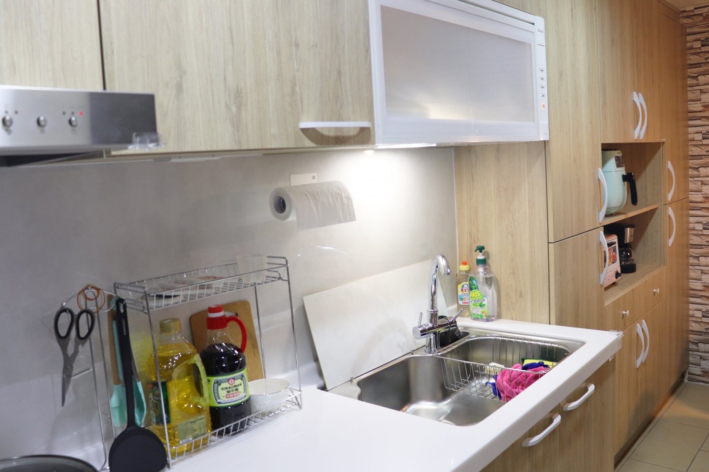 大容量收納空間更可以儲存日常用品,將所有雜物收進系統家具內,讓廚房變得整潔又好看。