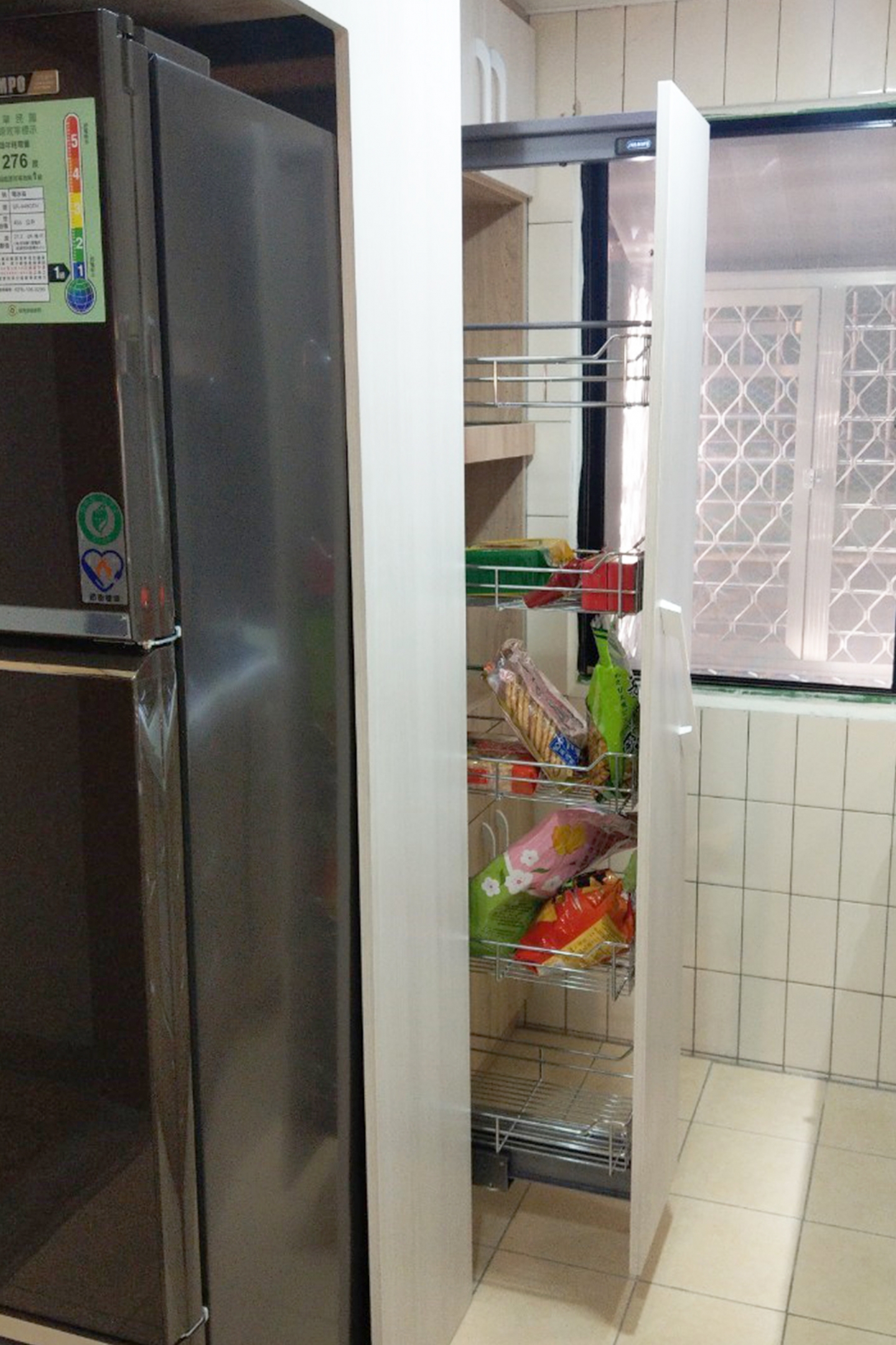 最多家庭採用的電器零食櫃,可依照廚房剩餘空間大小,打造專屬收納空間,完整收納家電、電器、零食、乾貨等等物品,保持廚房乾淨整潔。