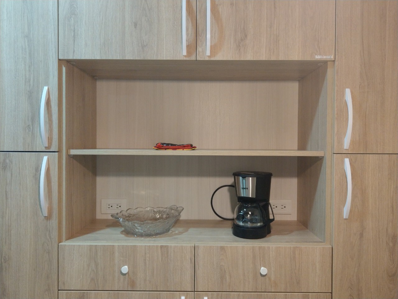 ▲大型電器櫃,中央簍空設計可放置常用電器,例如咖啡機、烤箱、氣炸鍋等等。