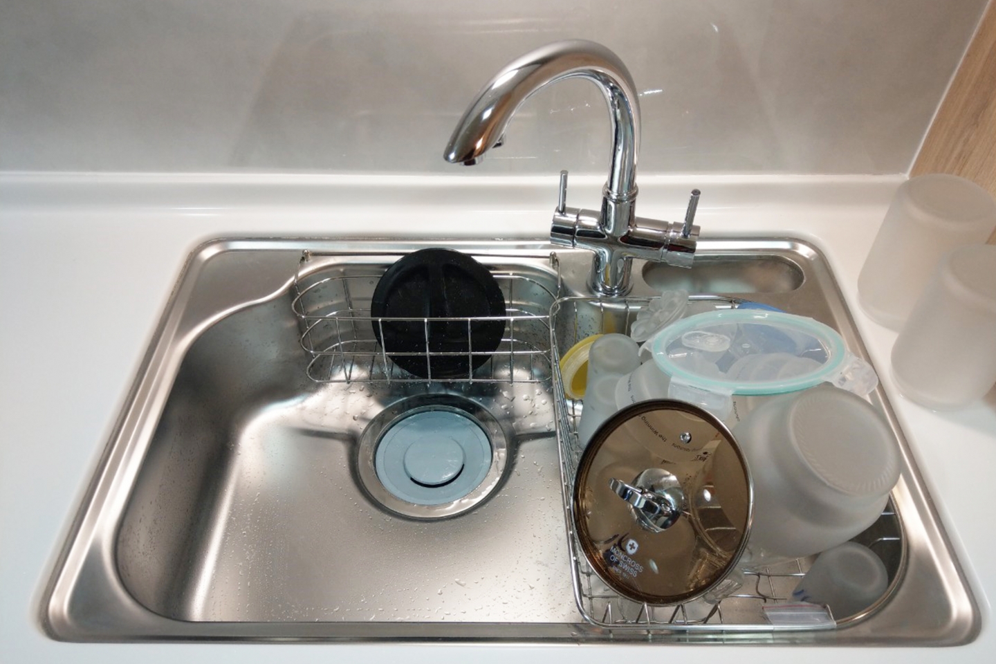 ▲機能型水槽,多種置物籃,可放置濕碗盤、菜瓜布、鍋蓋等等。